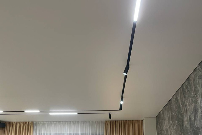 Толщина шва составляет всего 0,2 мм, поэтому он совсем незаметен, также мы устанавливаем бесшовные потолки.